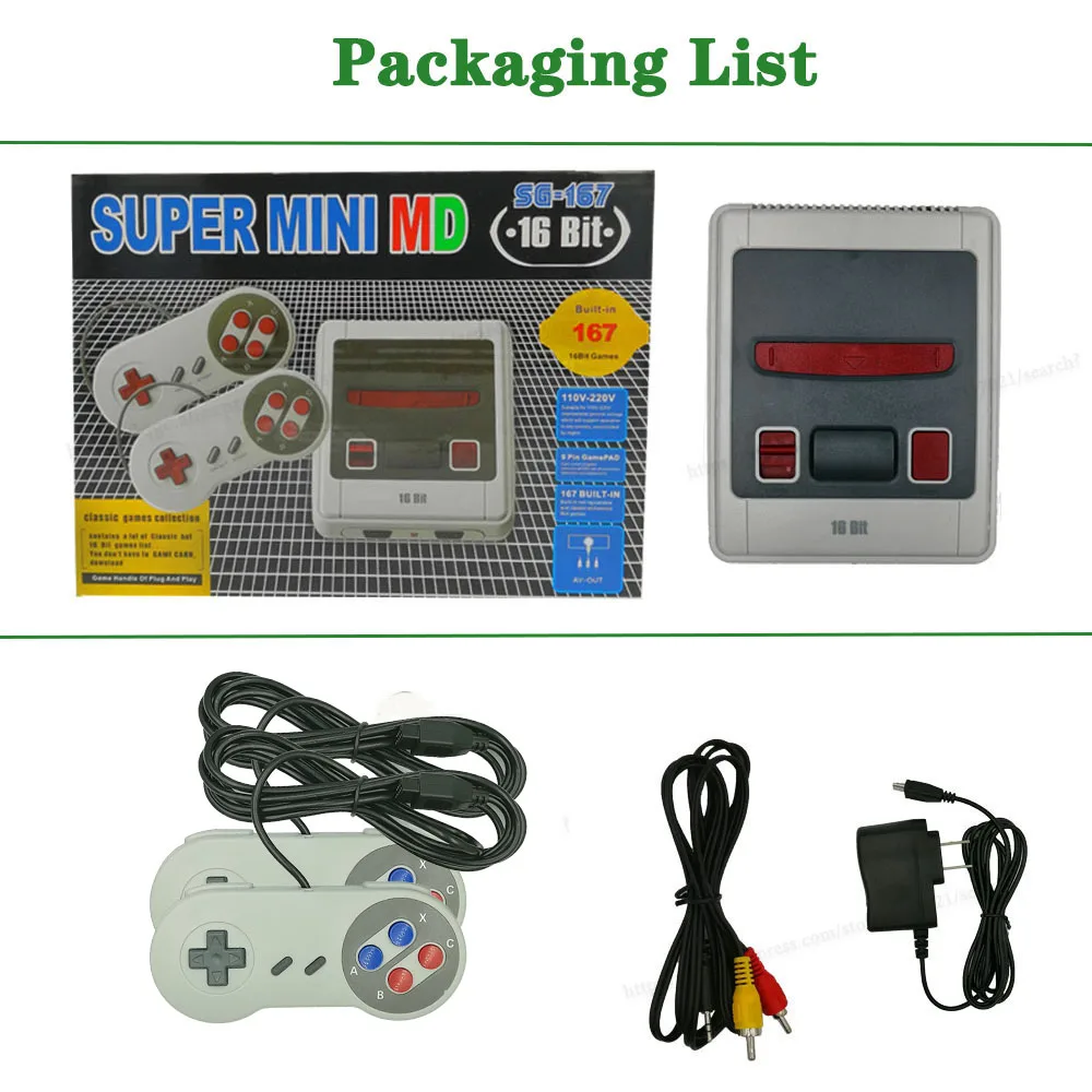 16 Bit Rétro Mini Console de Jeu Vidéo 167 Jeux Classiques TV AV-out Pour MD Sega SG-167 Famille Déterminer Jeu Lecteur Enfant Cadeau Chaud