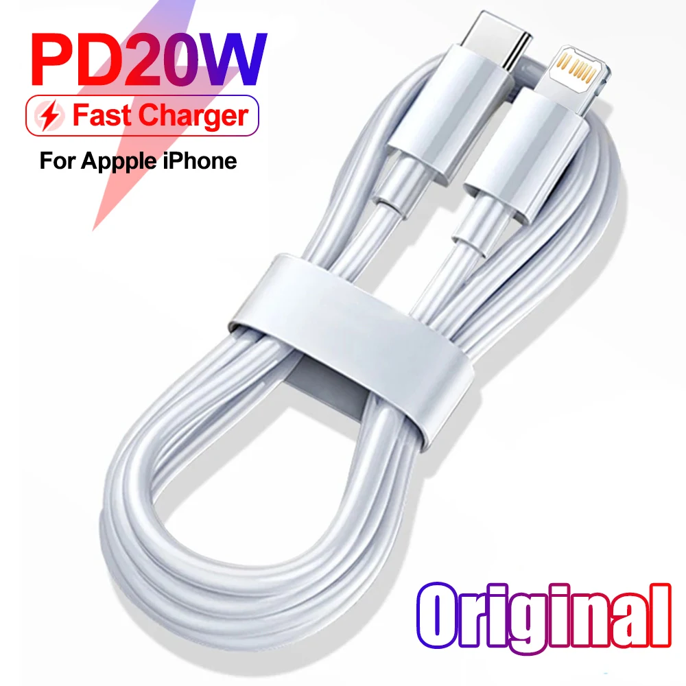 Cable de données de chargeur rapide d’origine PD 20W USB-C aux pluies pour Apple iPhone 14 13 11 12 Pro Max X Poly XS 8 7 Plus Type C de charge
