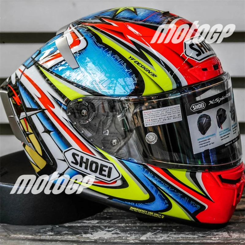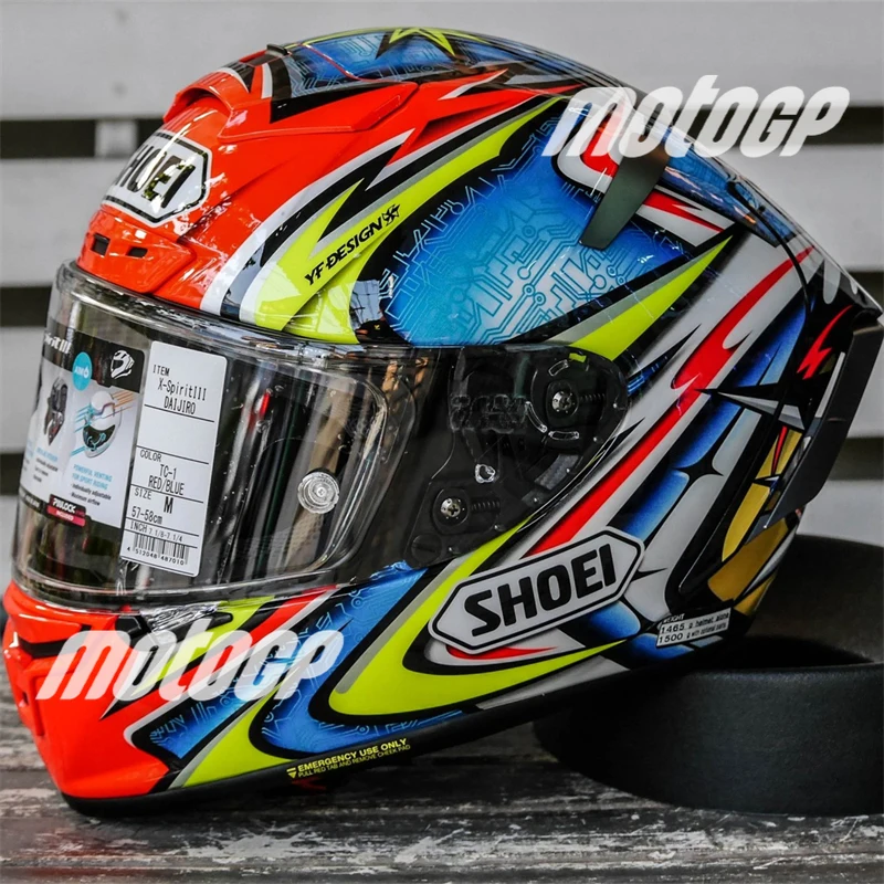 X-Fourteen / X-Spirit III, développé mettant beaucoup de valeur sur l’utilisation sur les circuits, définit la position où un coureur se penche fortement en avant comme position de base. La coque est conçue en analysant le vent de conduite allant de la partie avant d’un casque à l’arrière, puis à l’arrière de la combinaison de course à l’installation de la soufflerie. Les bords et les formes sur la surface d’une coque, le stabilisateur arrière équipant les volets arrière échangeables en fonction de la condition de conduite et du becquet d’air inférieur sont conçus et équipés pour augmenter au maximum les performances aérodynamiques. En comparant les valeurs dans l’expérience en soufflerie avec son prédécesseur, LIFT, DRAG et YAWING ont diminué de 3%, 10% et 50% respectivement (valeur de référence mesurée par l’installation interne). Une performance aérodynamique considérablement accrue peut faire beaucoup pour soulager la fatigue des coureurs.