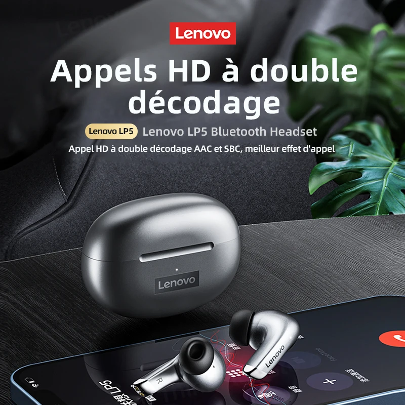 ecouteur sans fil lenovo Bluetooth LP5, oreillettes HiFi, musique, avec micro, casque d’écoute étanche pour sport, 100% d’origine, nouveau, 2024